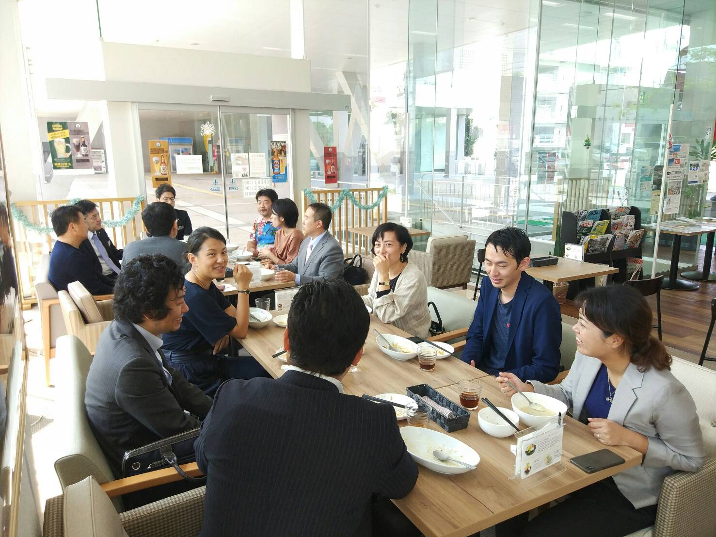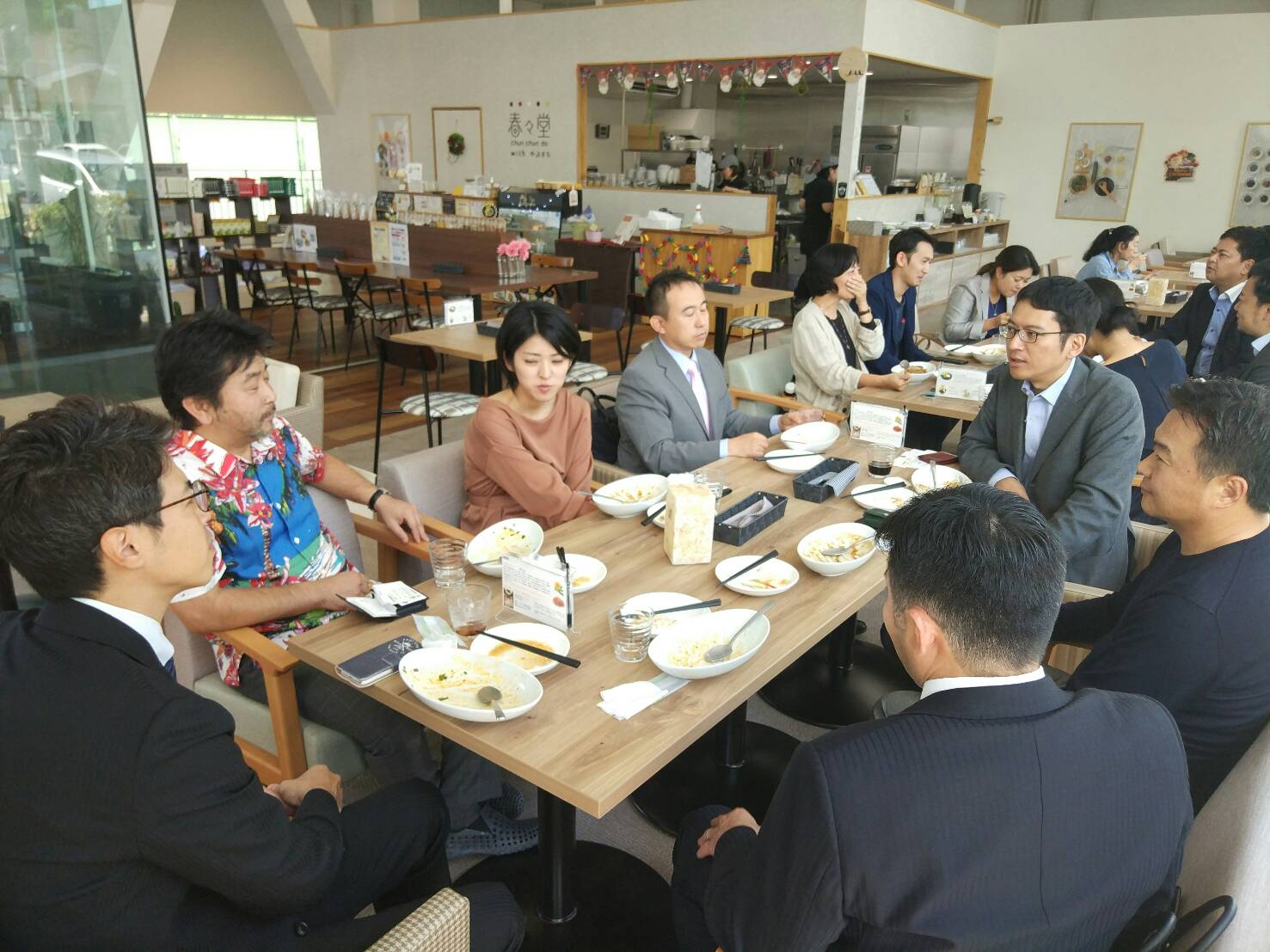 セミナー終了後は、なは市民協働プラザ1Fの春々堂withやぶさちにて交流会も開催いたしました。参加者から講師の御三方に対して、海外で事業を行うことの難しさや、やりがいなどを伺っているシーンがみられ、参加された企業様同士でお互いにビジネスの相談等、積極的に意見交換が行われました。